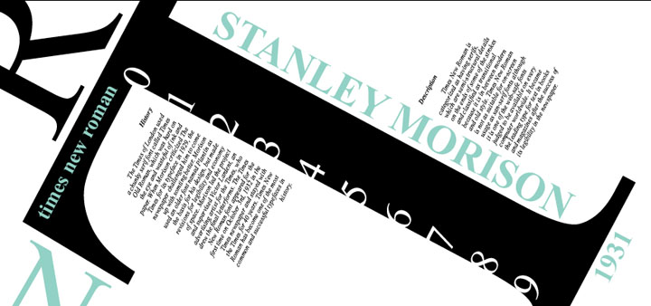 Times New Roman can be an overused and uninteresting typeface at times. This poster explains the history about its designer and a description of the font itself. I wanted this old newspaper font to look more interesting than it usually does, but continued with the tradition of the newspaper look with the article about the designer, Stanley Morison.